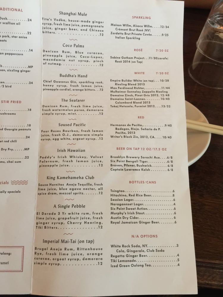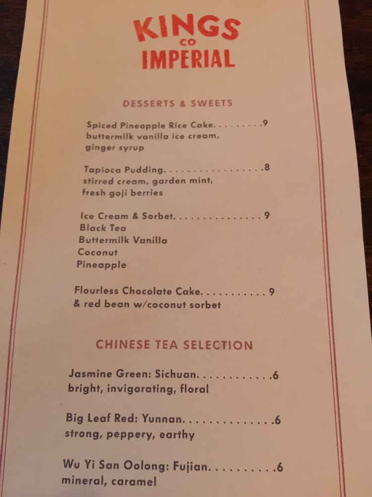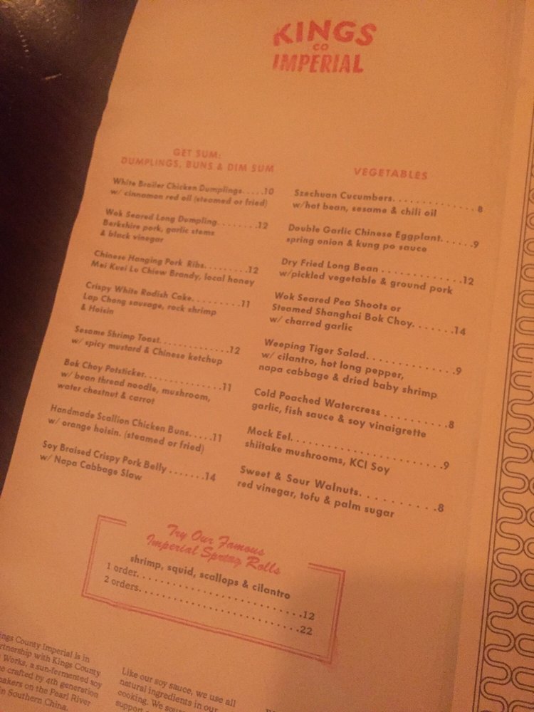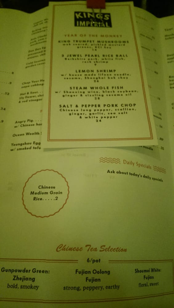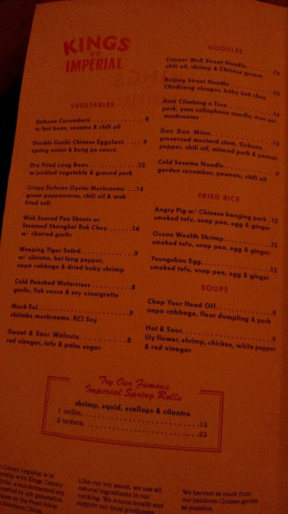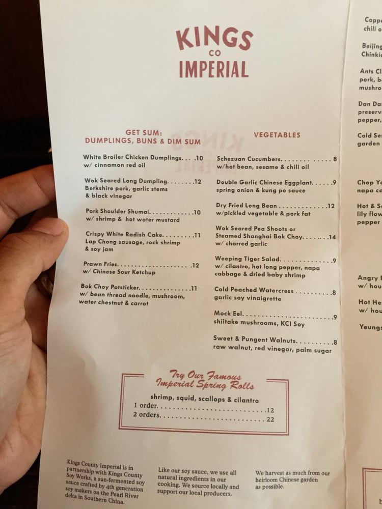 Kings Co Imperial, located in Brooklyn, NY, offers a diverse menu of Dim Sum, Szechuan, and Noodles. This hipster, casual spot caters to groups and dinner outings, with options for vegans and vegetarians. The restaurant provides a unique dining experience with its shareable plates and attentive staff who introduce each dish. The standout dishes include the flavorful soup dumplings, salt and pepper tofu, and pearly river cocktail. Customers praise the ample portions and quick service, making it a go-to spot for Chinese cuisine in Brooklyn. With a welcoming atmosphere and top-notch ingredients, Kings Co Imperial stands out as a must-visit for those seeking authentic and delicious Chinese food.